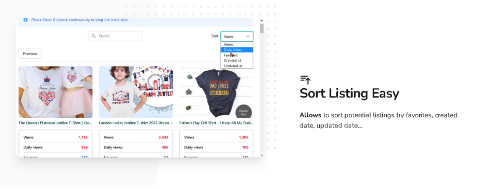 You will see the listing creation date, Daily view of the product, ... and many more features that we are developing.